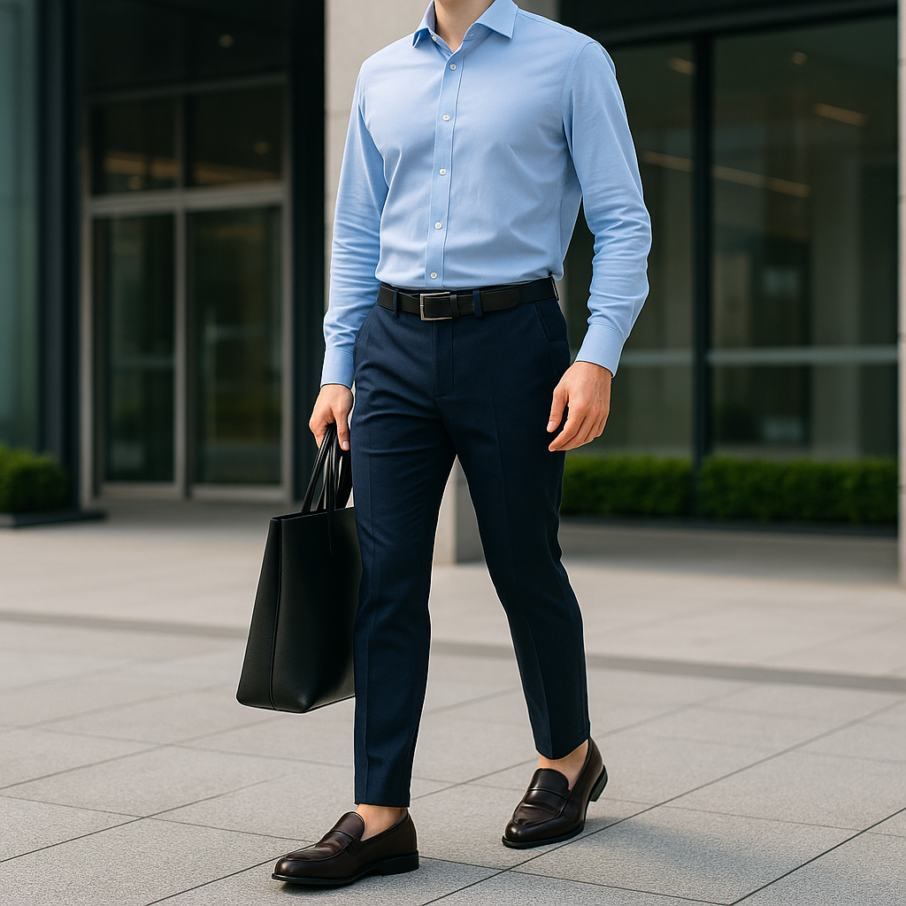 팬츠는 통기성 좋은 스트레이트 슬랙스나 테이퍼드 핏이 안정적이다.