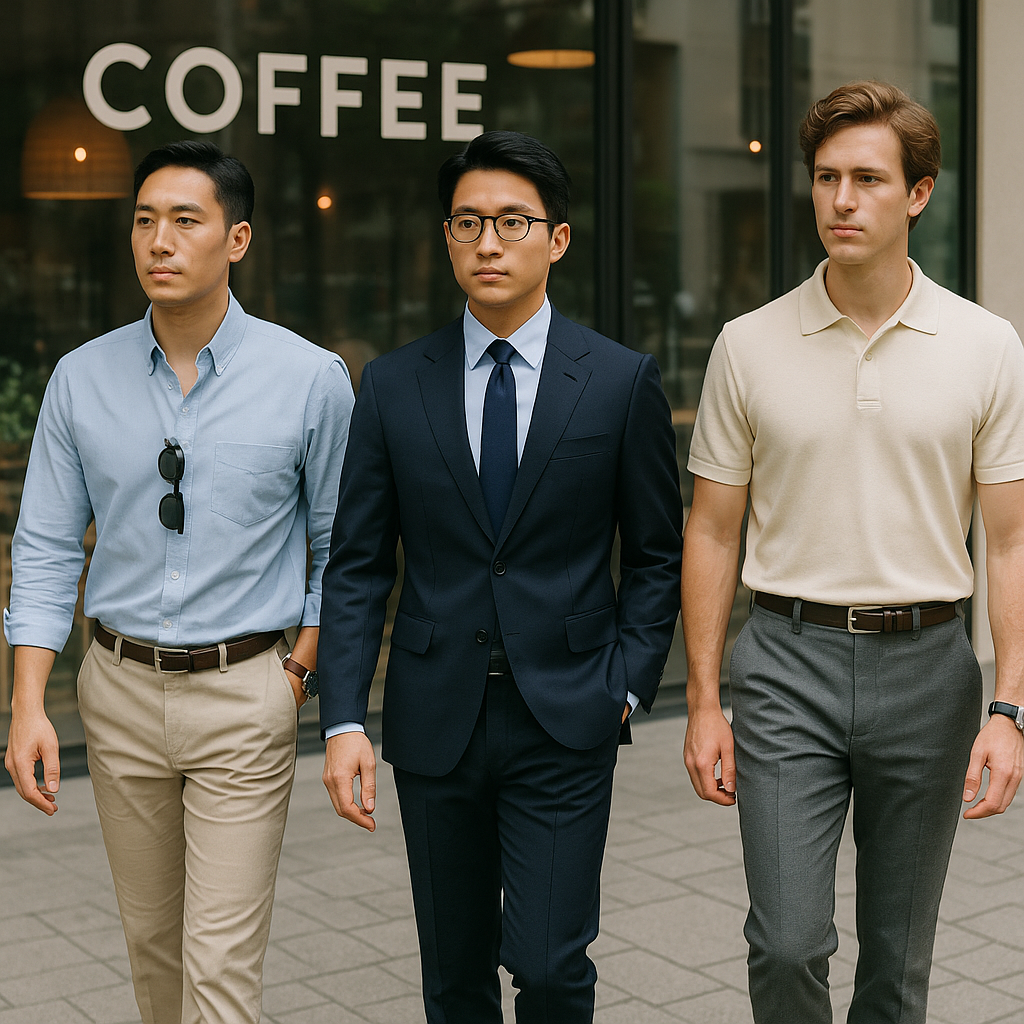 반면 단정하게 핏이 잡힌 기능성 셔츠와 깔끔한 슬랙스를 입은 이는 자신감 있어 보인다.
