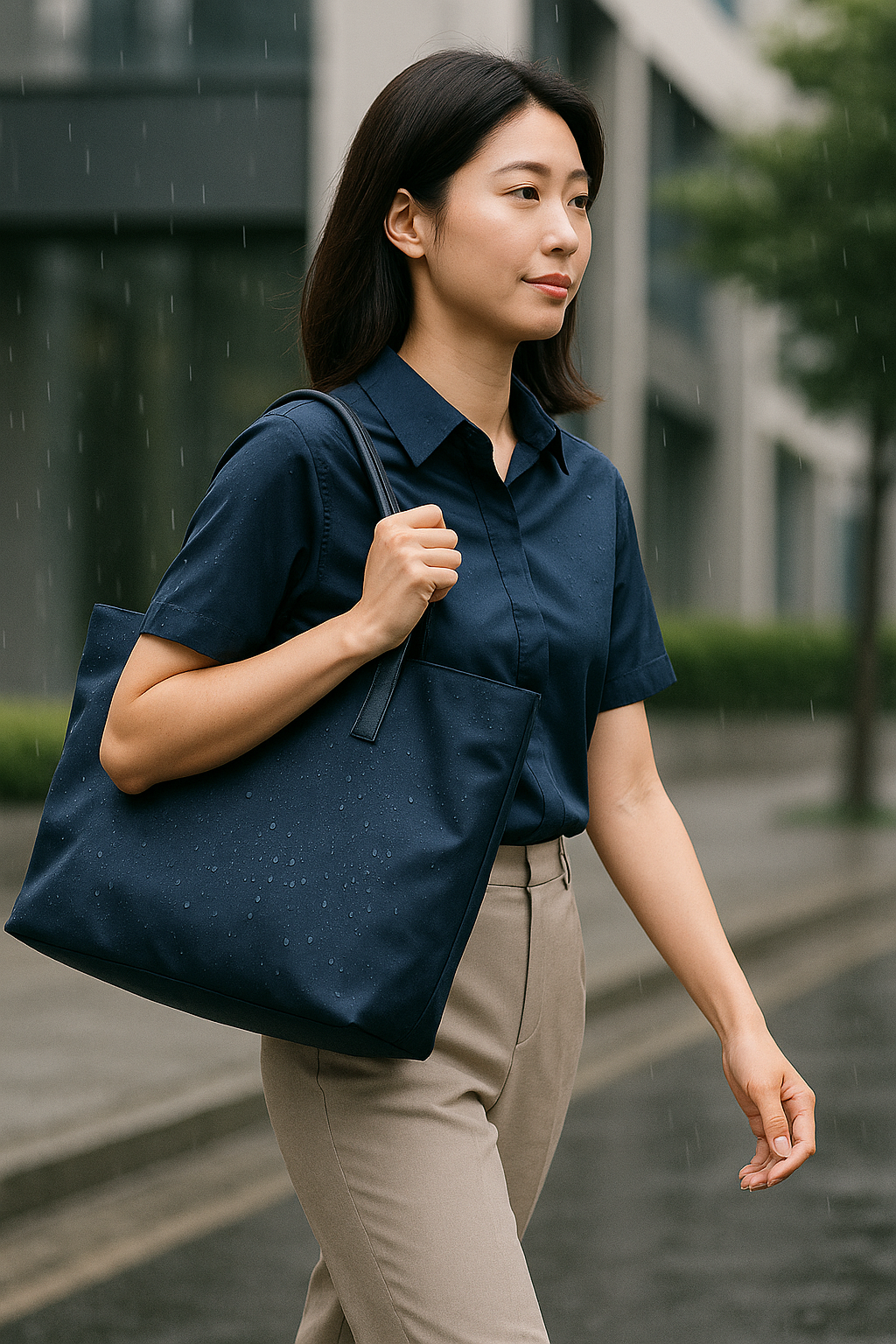 - 방수 코팅된 미니 토트백: 가볍고 휴대하기 편리하며, 오피스룩에도 잘 어울립니다.