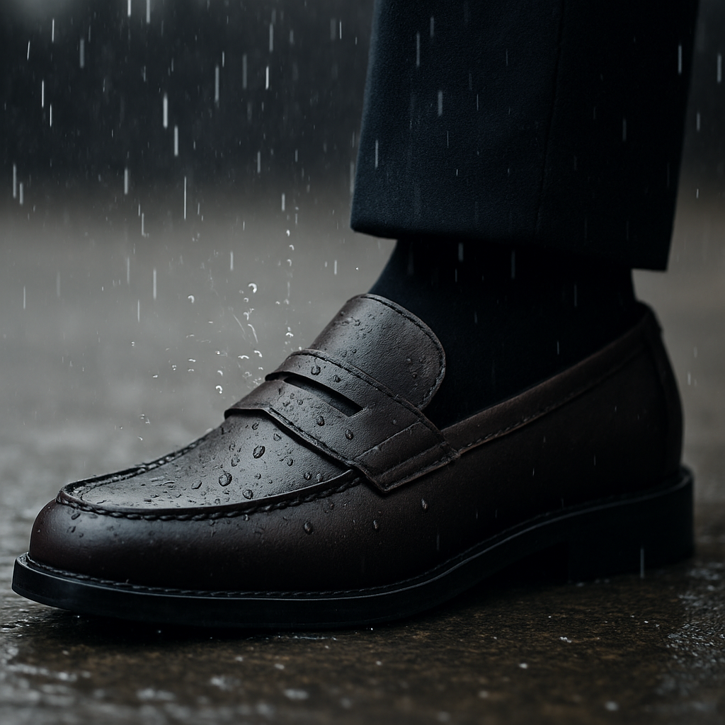 - 방수 코팅된 가죽 로퍼: 클래식한 디자인으로 오피스룩에 잘 어울리면서도, 방수 기능까지 갖춰 실용적입니다.