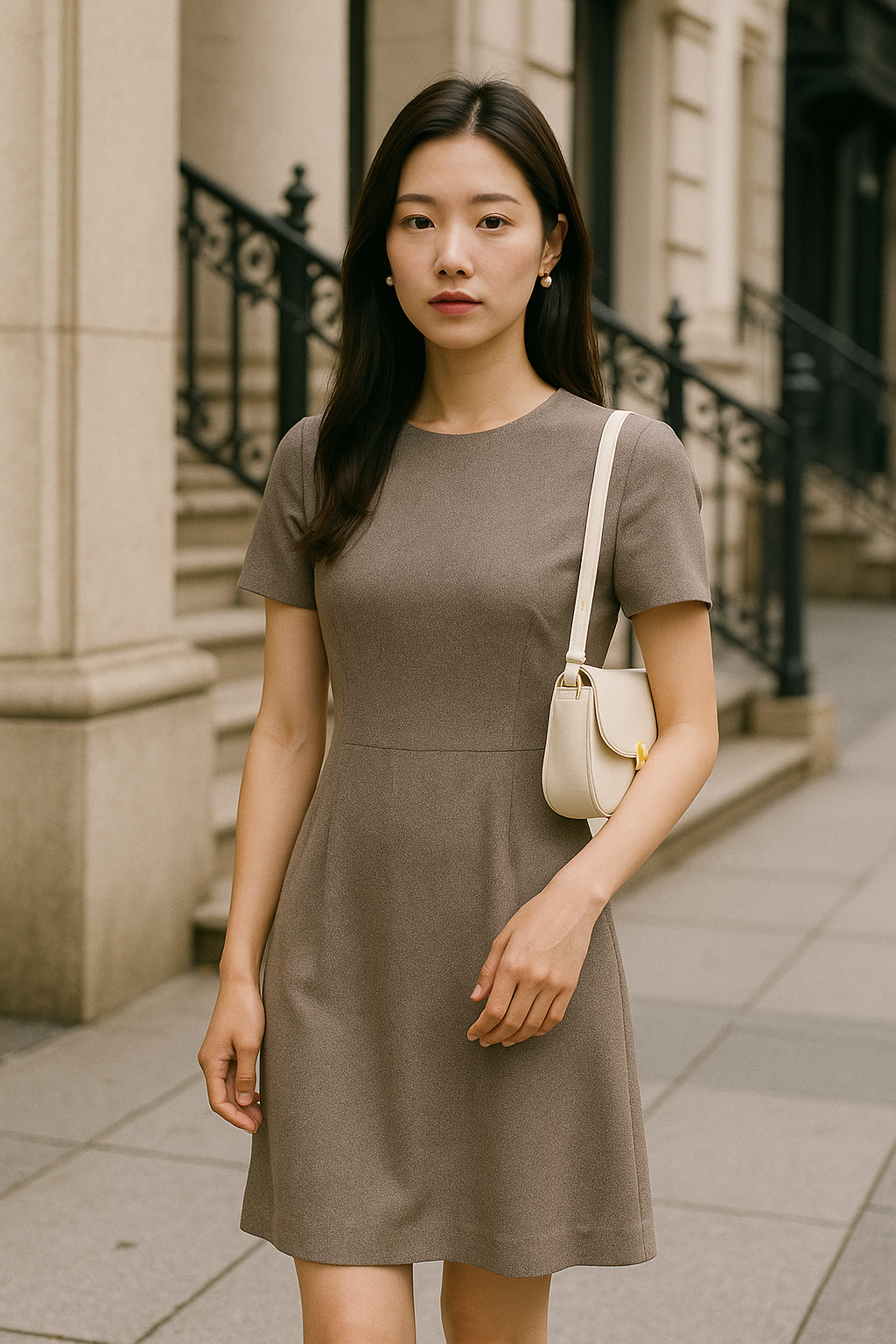 하객룩에 포인트를 줄 땐 무조건 과한 것보다 ‘절제된 디테일’을 선택하세요.