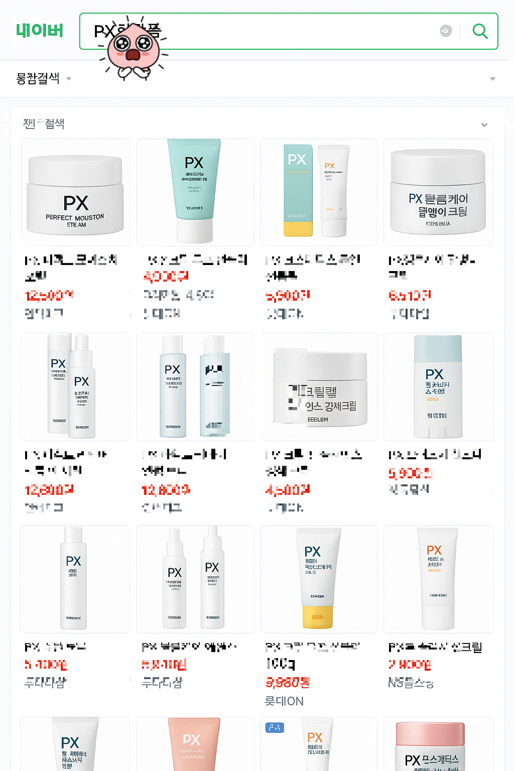 'PX화장품'의 네이버 가격비교 검색 결과입니다