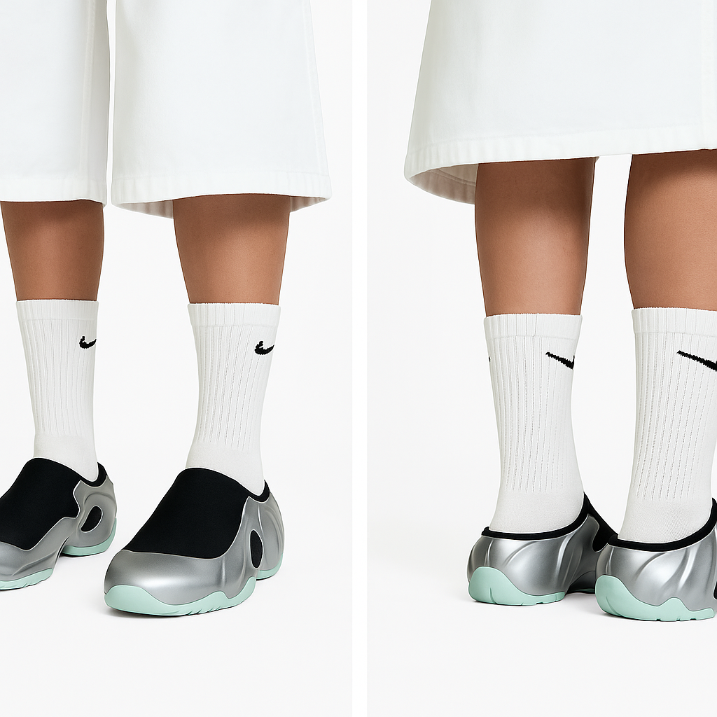 Clogposite는 ‘Clog(슬리퍼)’ + ‘Posite(나이키 에어 포짓 계열)’의 합성어다. 즉, 에어 포짓의 외계적인 디자인 DNA를 그대로 가져온 슬립온 타입의 EVA 신발이다. 처음 이 제품이 공개되었을 때 커뮤니티 반응은 “포짓이 미끄럼방지 슬리퍼로 나왔다?”는 놀라움이었다. 하지만 막상 실물을 보면, 디자인 완성도나 착화 목적, 마감 품질은 결코 ‘가볍게 넘길 수 없는 수준이다.