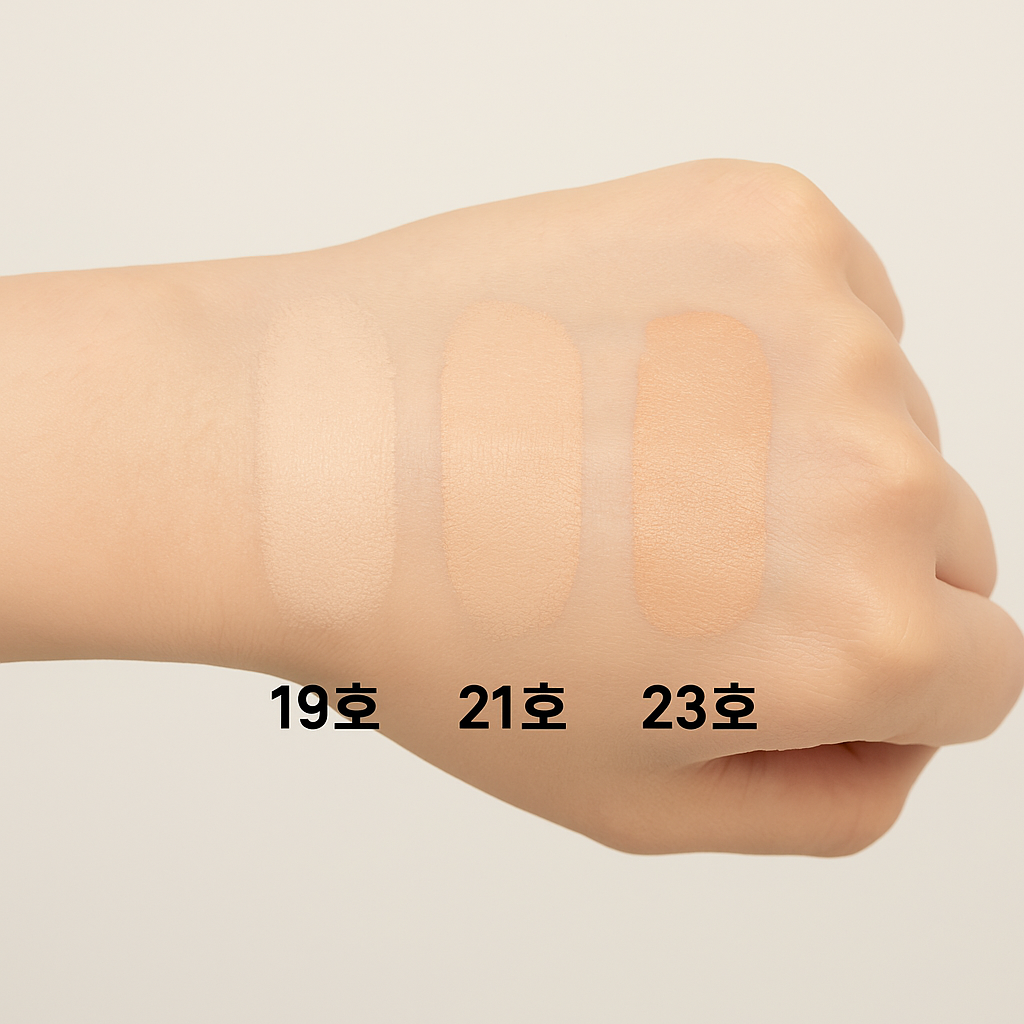 피부 톤이 밝고 붉은 기가 없는 경우 19호, 대부분의 한국인 피부에는 21호가 무난하며,