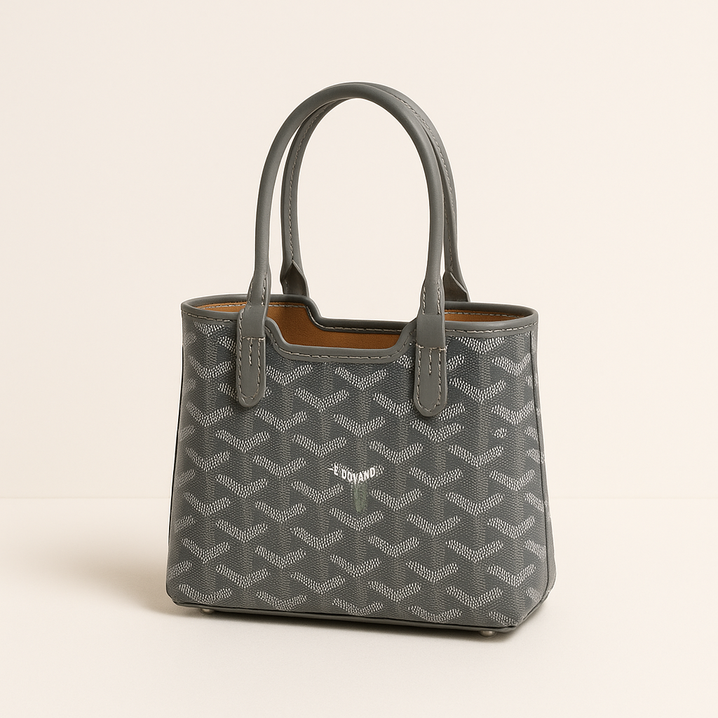 고야드의 ‘앙주(Anjou)’ 시리즈에서 파생된 미니백으로, 내부 리버서블 구조와 시그니처 캔버스, 최고급 소가죽의 조합이 특징이다.