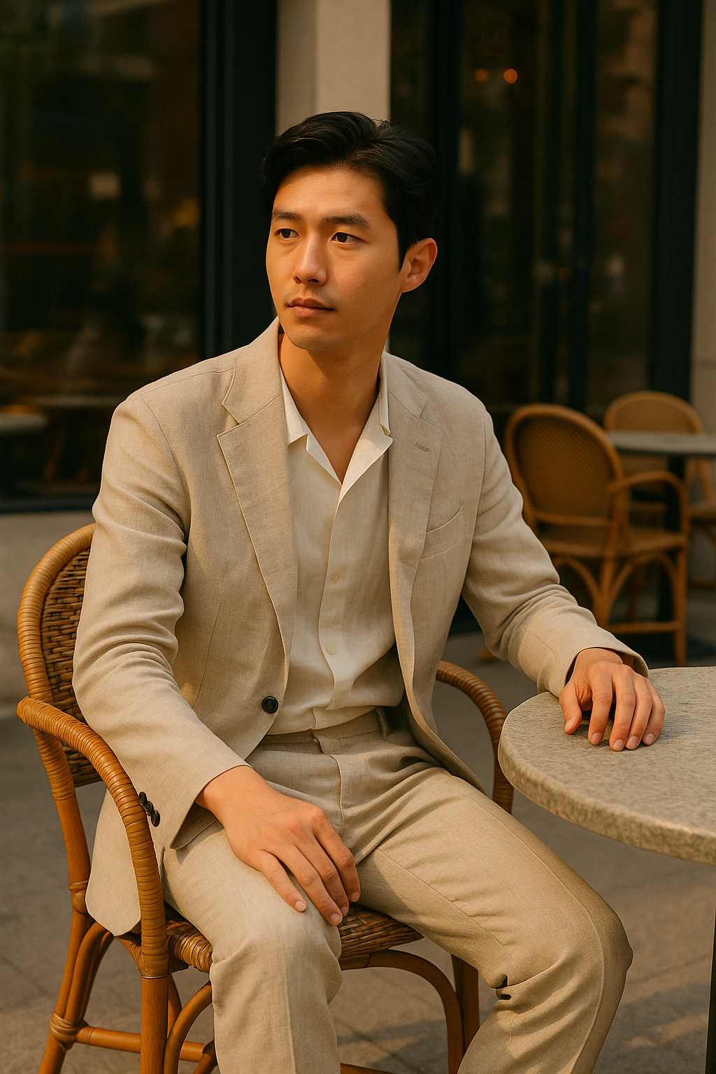 마시모 두띠의 린넨 셔츠와 슬랙스는 이 기준을 충족하면서도, 하나의 여백을 입은 듯한 감각을 남긴다.