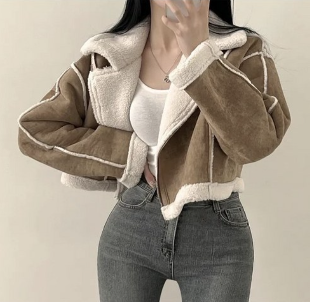 [상품 보러 가기] 쪼예 무스탕 터들넥 양털 안감 스웨이드 집업 숏 재킷
