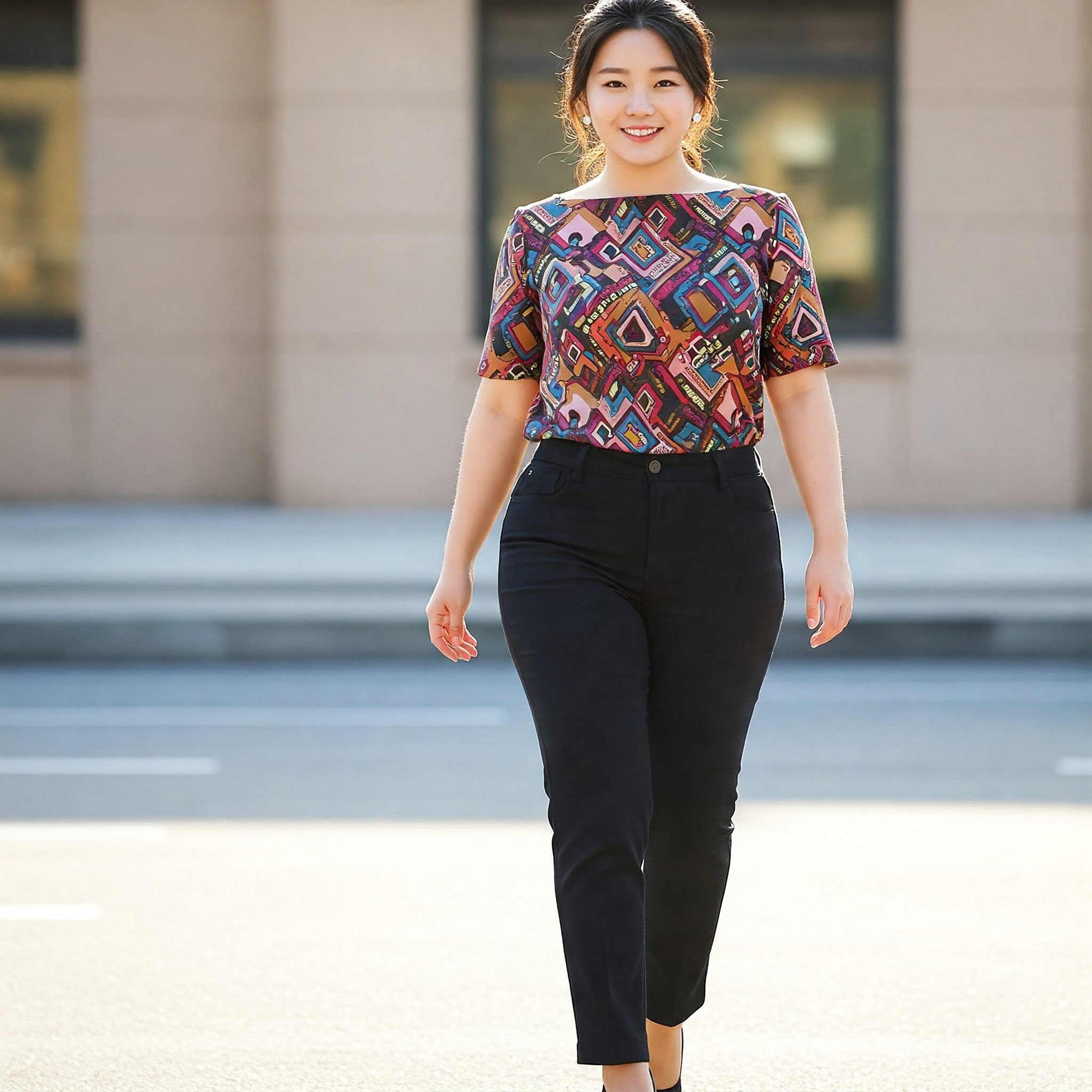 - 패턴: 상의는 화려한 패턴, 하의는 단색으로 시선 위로 유도하기