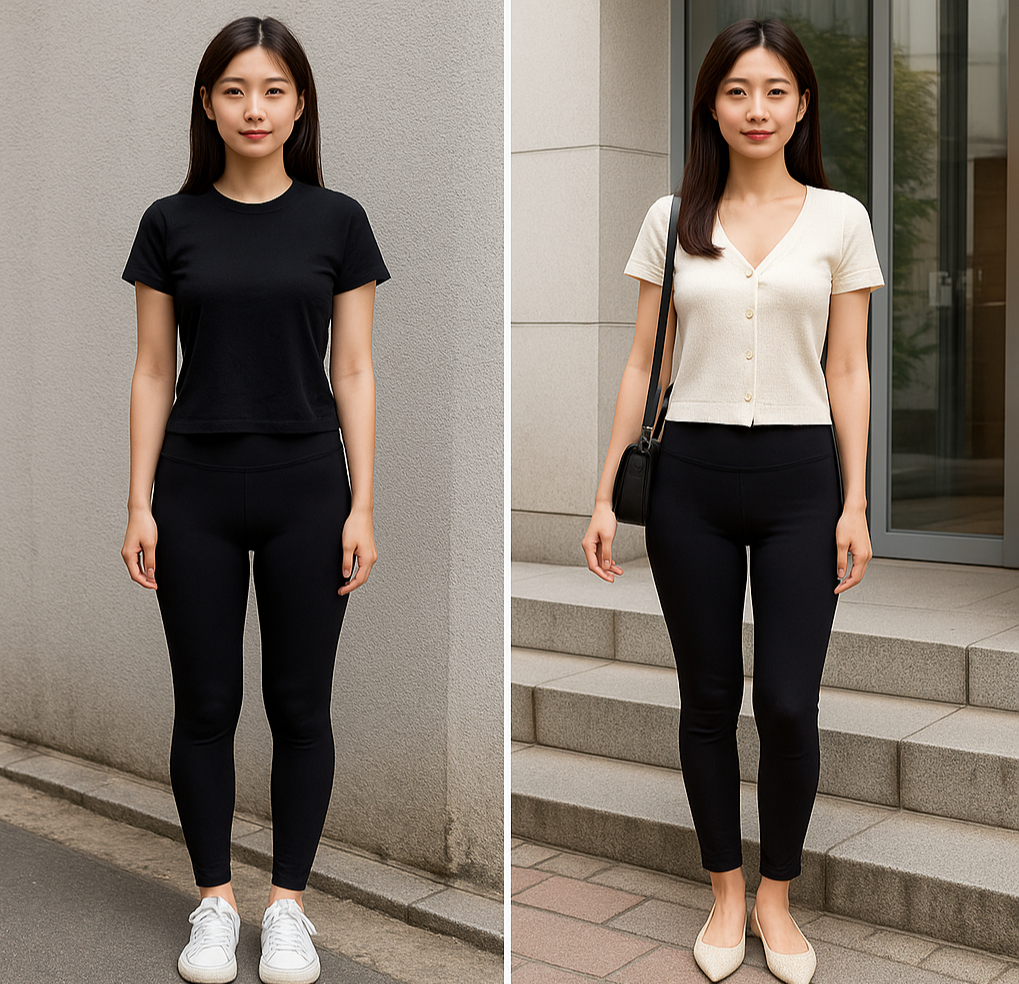레깅스를 제대로 입는다는 건, 단순히 편하게 입는 것이 아니라 체형과 비율, 소재와 상황을 고려한 스타일링을 의미합니다.