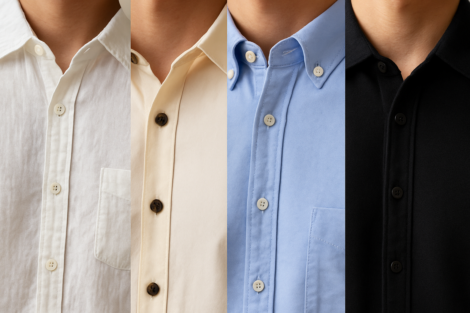 - 2. 카라 형태: 버튼다운은 캐주얼, 차이나 카라는 포멀 한 느낌에 적합합니다.