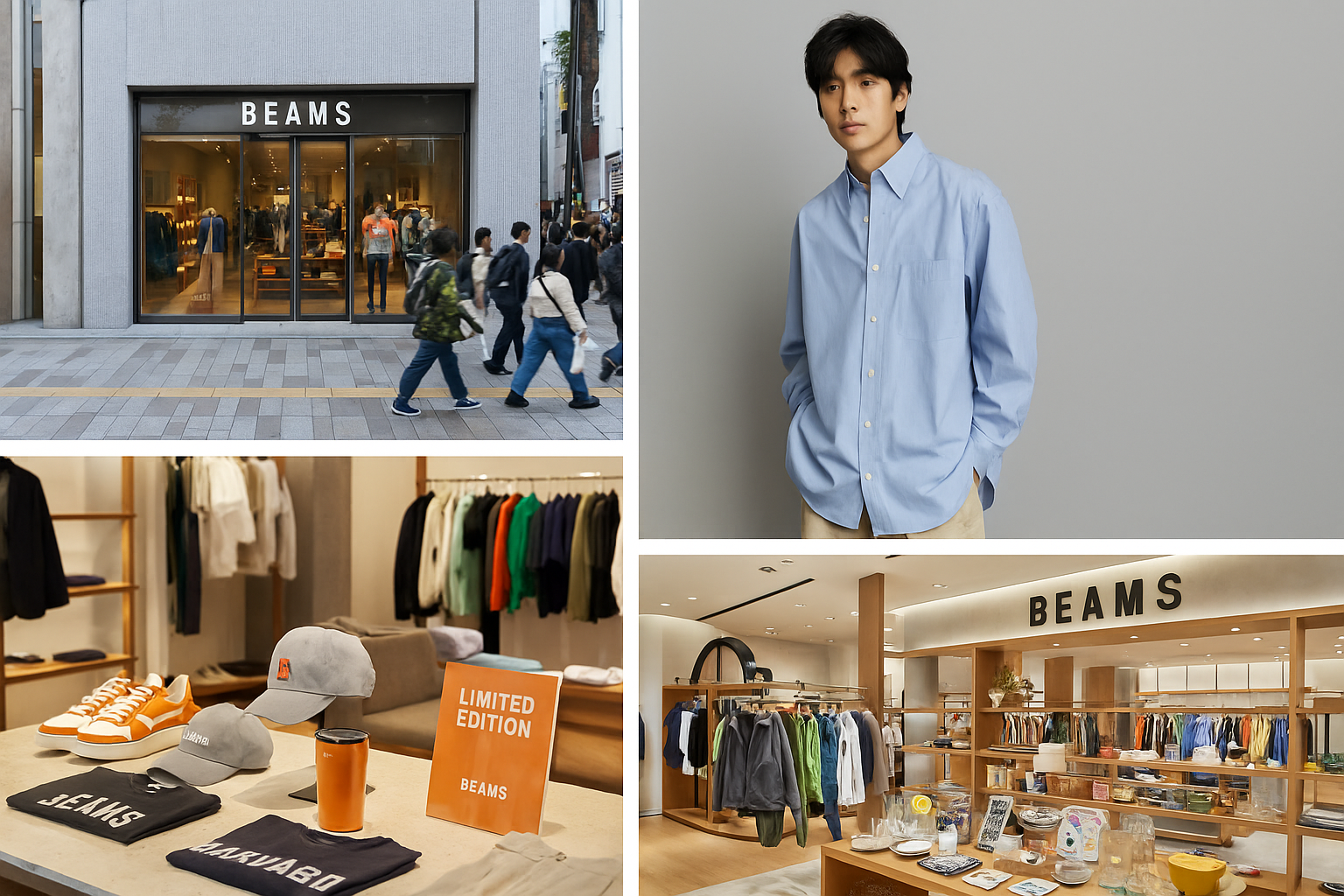 빔스(Beams)는 1976년 일본 도쿄 하라주쿠에서 시작된 전설적인 편집샵 브랜드입니다.