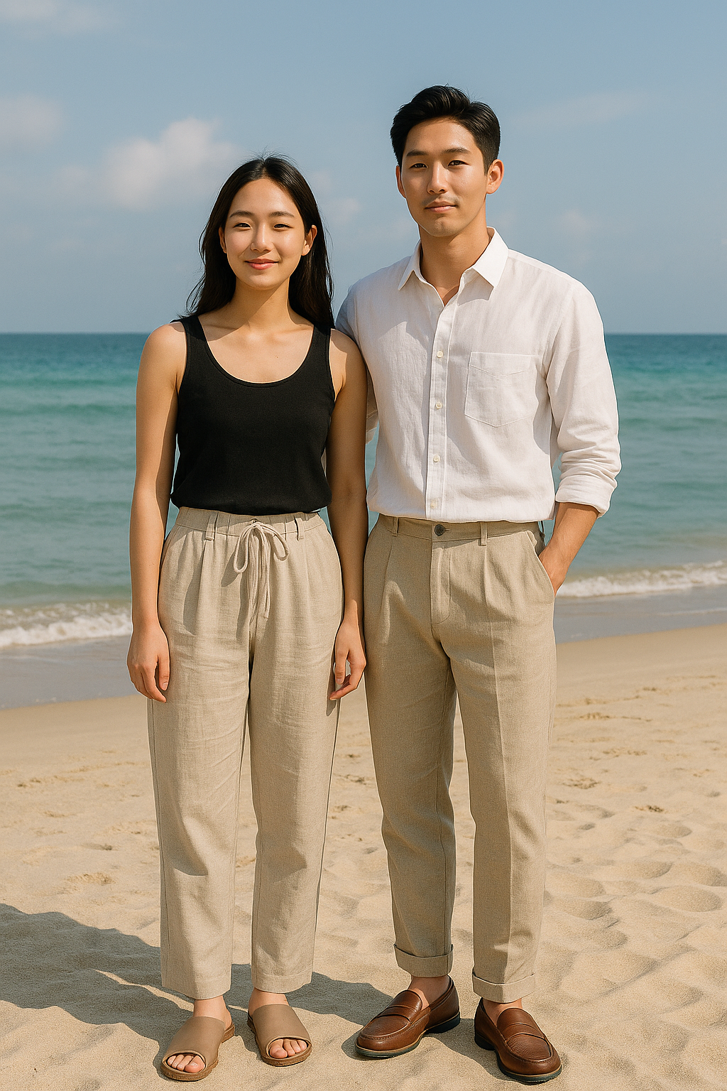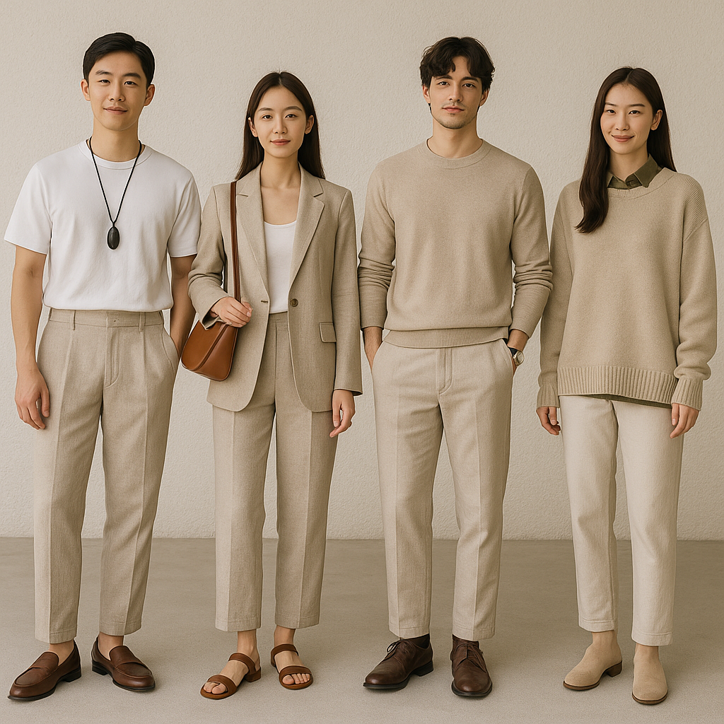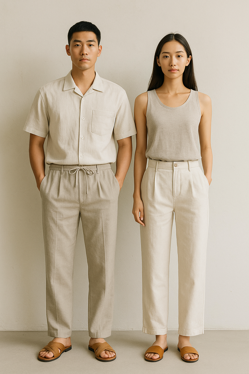 여성은 린넨 셋업이나 블라우스와의 조합이 감각적인 스타일을 만들어줍니다.